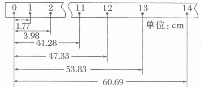 m/s(保留三位有效数字)。(3)(4 分)某同学用纸带的数据求出重力加速度 $ g = 9.77 \, m/s^2 $,并用此 $ g $ 值计算得出打点“1”到“13”过程重锤的重力势能减小值为 $ 5.09m $,另计算得动能增加值为 $ 5.08m $($ m $ 为重锤质量),则该结果