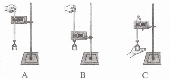 (1)应手提纸带上端使纸带竖直,同时使重锤靠近打点计时器,由静止释放,故选B。