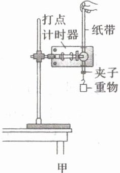2. (8 分)(2021·浙江 6 月选考·17(1))在“验证机械能守恒定律”实验中,小王用如图甲所示的装置,让重物从静止开始下落,打出一条清晰的纸带,其中的一部分如图乙所示。$ O $ 点是打下的第一个点,$ A $、$ B $、$ C $ 和 $ D $ 为另外 4 个连续打下的点。