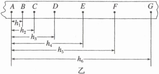(1)(6 分)在弹性限度内将钩码缓慢下拉至某一位置,测得此时弹簧的长度为 $ L $。接通打点计时器电源。从静止释放钩码,弹簧收缩,得到了一条点迹清晰的纸带。钩码加速上升阶段的部分纸带如图乙所示,纸带上相邻两点之间的时间间隔均为 $ T $(在误差允许范围内,认为释放钩码的同时打出 $ A $ 点)。从打出 $ A $ 点到打出 $ F $ 点时间内,弹簧的弹性势能减少量为