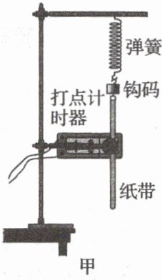 6. (10 分)(2022·河北卷·11)某实验小组利用铁架台、弹簧、钩码、打点计时器、刻度尺等器材验证系统机械能守恒定律,实验装置如图甲所示。弹簧的劲度系数为 $ k $,原长为 $ L_0 $,钩码的质量为 $ m $。已知弹簧的弹性势能表达式为 $ E = \frac{1}{2}kx^2 $,其中 $ k $ 为弹簧的劲度系数,$ x $ 为弹簧的形变量,当地的重力加速度大小为 $ g $。
