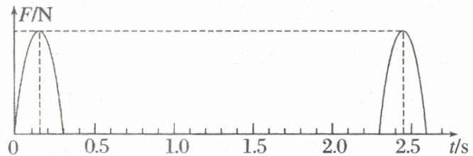 7.BD [根据牛顿第三定律结合题图可知$t = 0.15\ s$时,蹦床对运动员的弹力最大,蹦床的形变量最大,此时运动员处于最低点,运动员的重力势能最小,故A错误;运动员从$t = 0.30\ s$离开蹦床到$t = 2.30\ s$再次落到蹦床上经历的时间为$2\ s$,根据竖直上抛运动的对称性可知,运动员上升时间为$1\ s$,则在$t = 1.30\ s$时,运动员恰好运动到最大高度处,$t = 0.30\ s$时运动员的速度大小$v = 10 × 1\ m/s = 10\ m/s$,故B正确,C错误;同理可知运动员落到蹦床时的速度大小为$10\ m/s$,以竖直向上为正方向,根据动量定理得$F \cdot \Delta t - mg \cdot \Delta t = mv - (-mv)$,其中$\Delta t = 0.30\ s$,代入数据可得$F = 4600\ N$,根据牛顿第三定律可知运动员每次与蹦床接触到离开过程中对蹦床的平均作用力大小为$4600\ N$,故D正确。]