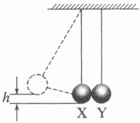 7. (多选)(八省联考·四川·9)如图,小球$X$、$Y$用不可伸长的等长轻绳悬挂于同一高度,静止时恰好接触,拉起$X$,使其在竖直方向上升高度$h$后由静止释放,$X$做单摆运动到最低点与静止的$Y$正碰。碰后$X$、$Y$做步调一致的单摆运动,上升最大高度均为$\frac{h}{4}$,若$X$、$Y$质量分别为$m_X$和$m_Y$,碰撞前后$X$、$Y$组成系统的动能分别为$E_{k1}$和$E_{k2}$,则(
