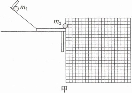 用如图甲所示的装置根据平抛运动规律验证两小球碰撞中的动量守恒。使用频闪相机对小球碰撞前后的运动情况进行拍摄。图中背景是放在竖直平面内带方格的纸板,纸板平面与小球运动轨迹所在的平面平行,每个小方格的边长为 $ a = 5 \, cm $,$ g $ 取 $ 10 \, m/s^2 $,实验核心步骤如下: