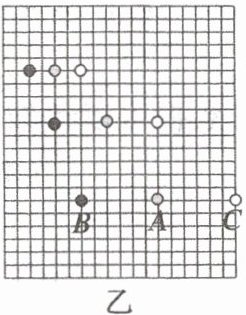(1)让质量为 $ m_{1} $ 的小球从挡板处由静止释放,从斜槽末端水平抛出后频闪照片如图乙中的 $ A $ 所示。
