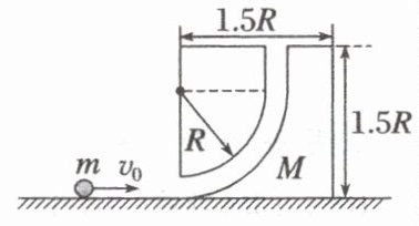 则有$mv_0 = (M + m)v$,$\frac{1}{2}mv_0^2 = \frac{1}{2}(M + m)v^2 + mg \cdot 1.5R$