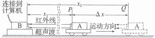 (2) 经过Δt时间后,A再次同时发射一个红外线脉冲和一个超声波脉冲,此次B接收的时间差为t₂,求A两次发射过程中,小车运动的距离Δx为多大?小车运动的速度v为多大?