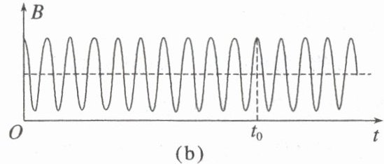 (3) (3分) 某次采集到的磁感应强度 $ B $ 的大小随时间 $ t $ 变化的图像如图(b)所示,从图中可以算出弹簧振子振动周期 $ T = $