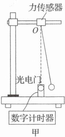某同学用如图甲所示的实验装置做“用单摆测重力加速度”的实验。细线的一端固定在一力传感器触点上,力传感器与电脑屏幕相连,能直观显示细线的拉力大小随时间的变化情况,在摆球的平衡位置处安放一个光电门,连接数字计时器,记录小球经过光电门的次数及时间。