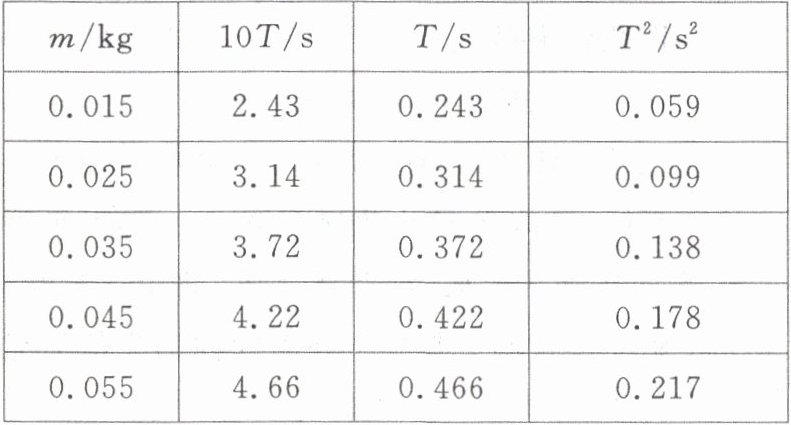 (5)分析数据可知,弹簧振子振动周期的平方与质量的比值接近常量3.95,则弹簧振子振动周期的平方与质量的关系是线性的;