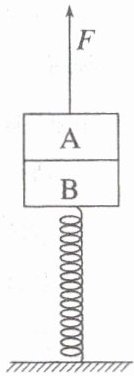 (2024·福建厦门市模拟)如图所示,一轻质弹簧的下端固定在水平面上,上端叠放两个质量均为$1\ kg$的物体A、B(B物体与弹簧拴接),弹簧的劲度系数为$k = 50\ N/m$,初始时系统处于静止状态。现用一方向竖直向上的拉力$F$作用在物体A上,使物体A开始向上做加速度大小$a$为$4\ m/s^2$的匀加速直线运动,重力加速度$g$取$10\ m/s^2$,空气阻力忽略不计,下列说法正确的是(