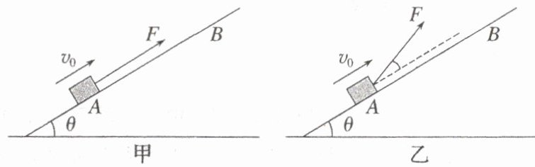 (2025·安徽芜湖市诊断)如图甲所示,一个质量$m = 0.5\ kg$的小物块(可看成质点),以$v_0 = 2\ m/s$的初速度在平行斜面向上的拉力$F = 6\ N$作用下沿斜面向上做匀加速运动,经$t = 2\ s$的时间物块由A点运动到B点,A、B之间的距离$L = 8\ m$,已知斜面倾角$\theta = 37°$,重力加速度$g$取$10\ m/s^2$,$\sin 37° = 0.6$,$\cos 37° = 0.8$。求: