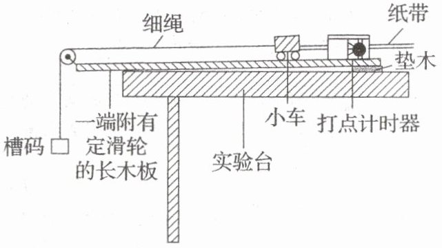 (3) 平衡阻力:在长木板不带定滑轮的一端下面垫上垫木,使小车能下滑。