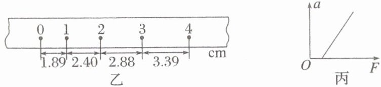 (3) 图乙中给出了实验中获取的纸带的一部分数据,$0$、$1$、$2$、$3$、$4$是计数点,每相邻两计数点间还有4个点(图中未标出),计数点间的距离如图乙所示。则打下计数点2时物块对应的速度大小$v=$