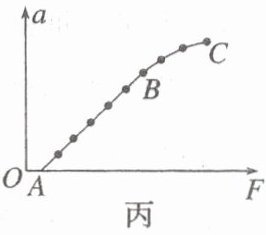 的总质量不变,改变沙桶内沙的质量,重复做几次实验,通过实验数据来研究加速度和力的关系。(6) 在探究加速度与力的关系时,该同学根据实验数据作出的$a - F$图像如图丙所示,发现该图线不通过坐标原点且$BC$段明显偏离直线,分析其产生的原因,下列说法正确的是