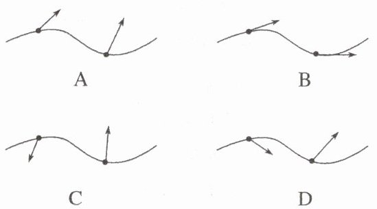小车在水平地面上沿轨道从左向右运动,动能一直增加。如果用带箭头的线段表示小车在轨道上相应位置处所受合力,下列四幅图可能正确的是(