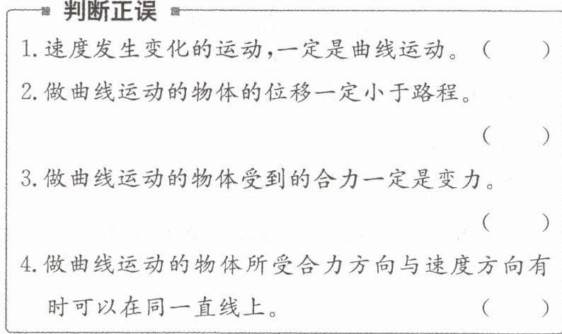 4. 做曲线运动的物体所受合力方向与速度方向有时可以在同一直线上。()