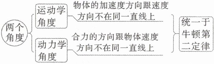 物体所受合力的方向(或加速度方向)跟它的速度方向不在同一直线上