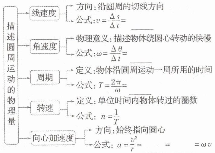 $\frac{2\pi r}{T}$;$\frac{2\pi}{T}$;$\frac{2\pi r}{v}$;$\omega^{2}r$;$\frac{4\pi^{2}r}{T^{2}}$