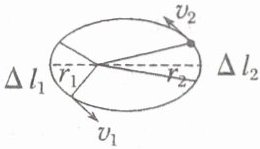 (2) 由开普勒第二定律,行星与太阳连线单位时间扫过面积相等。近日点Δt内扫过面积$ \Delta S_1 = \frac{1}{2}r_1 \cdot v_1\Delta t $,远日点$ \Delta S_2 = \frac{1}{2}r_2 \cdot v_2\Delta t $。因$ \Delta S_1 = \Delta S_2 $,故$ \frac{1}{2}r_1v_1\Delta t = \frac{1}{2}r_2v_2\Delta t $,化简得$ \frac{v_1}{v_2} = \frac{r_2}{r_1} $。