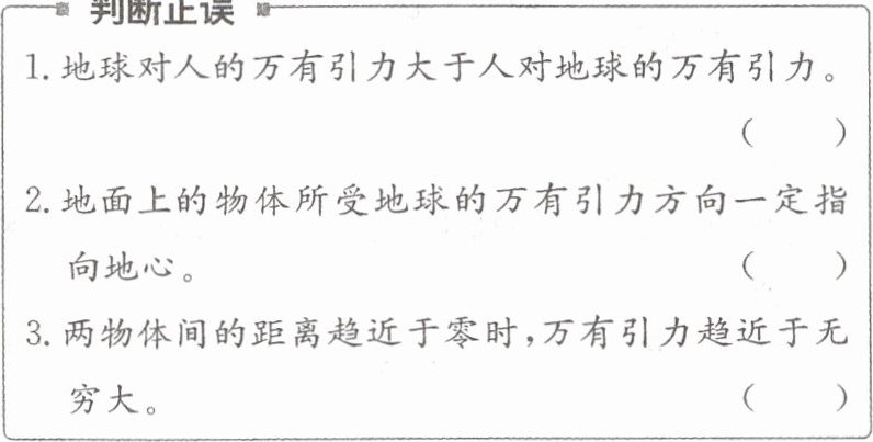 1. 地球对人的万有引力大于人对地球的万有引力。()