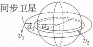 (多选)如图所示,赤道面内的同步卫星与地心的距离为 $ r $,运行速率为 $ v_{1} $,向心加速度大小为 $ a_{1} $,地球赤道上的物体随地球自转的向心加速度大小为 $ a_{2} $,第一宇宙速度大小为 $ v_{2} $,地球半径为 $ R $,则下列比值正确的是(