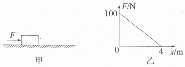 3. (2024·山西省怀仁一中期中)如图甲所示,质量为$4\mathrm{kg}$的物体在水平推力作用下开始运动,推力大小$F$随位移大小$x$变化的图像如图乙所示,物体与水平地面间的动摩擦因数$\mu = 0.5$,$g$取$10\mathrm{m/s^{2}}$,不计空气阻力,则该物体在$0\sim 4\mathrm{m}$的运动过程中(