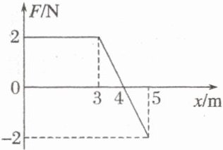例3 B 力$F$对物体做的功等于$F - x$图线与横轴所围面积的代数和,0~4s这段时间内力$F$对物体做的功为$W_{1} = \frac{1}{2} × (3 + 4) × 2J = 7J$,4~5s这段时间内力$F$对物体做的功为$W_{2} = -\frac{1}{2} × (5 - 4) × 2J = -1J$,全过程中,力$F$对物体做的功为$W = W_{1} + W_{2} = 7J - 1J = 6J$,故选B。