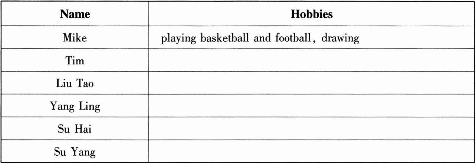 Hello. I'm Mike. I like playing ______ and ______. I can play basketball ______, but I am not good at ______. My brother Tim and I both like ______. My friend Liu Tao likes playing ______. He is ______ at it. My friend Yang Ling likes ______ ______. She has a ______ of books. She also likes playing the ______. Su Hai and Su Yang are ______. Su Hai likes ______. Su Yang likes ______ ______. They both like ______.