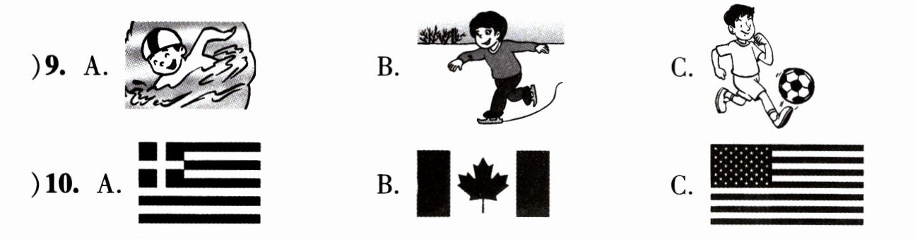 一、听音,选出所听句子中含有的单词或单词对应的图片。