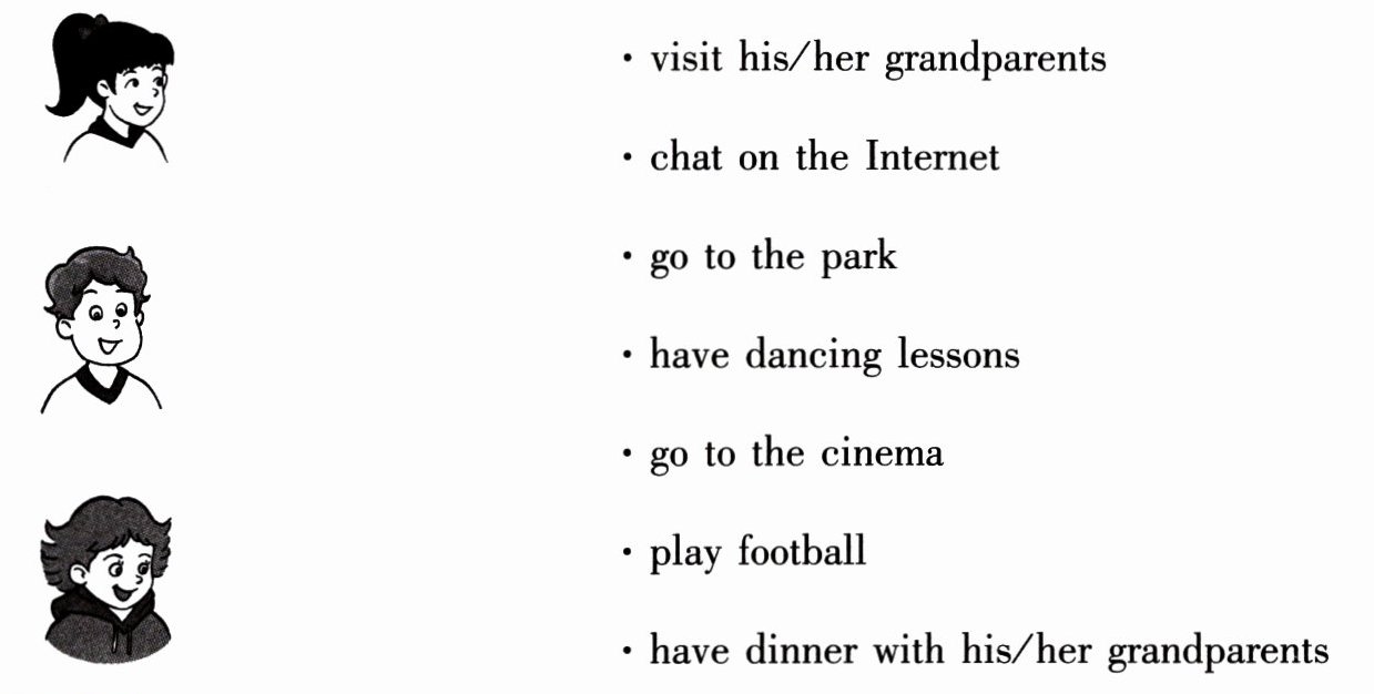 3. 做调查:询问班级里的其他同学周末都做些什么。