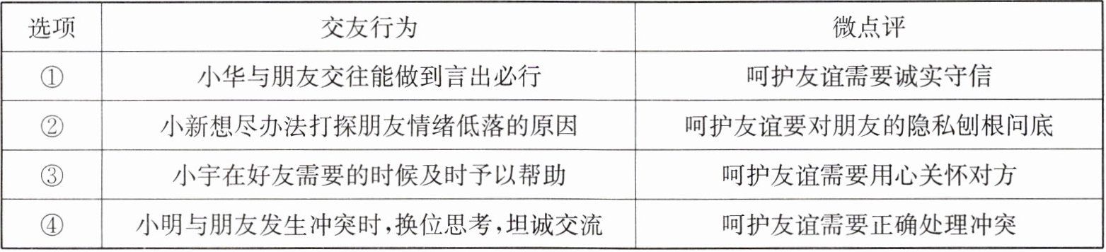|①|小华与朋友交往能做到言出必行|呵护友谊需要诚实守信|