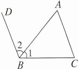 [证明]因为BD//AC,所以∠2=∠A,∠DBC+∠C=180°.因为∠DBC=∠1+∠2,所以∠1+∠2+∠C=180°,即∠A+∠ABC+∠C=180°.