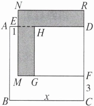 (2)如图,已知正方形$ABCD的边长为x$,$E$,$F分别是AD$,$DC$上的点,且$AE = 1$,$CF = 3$,长方形$EMFD$的面积是48,分别以$MF$,$DF$为边作正方形。