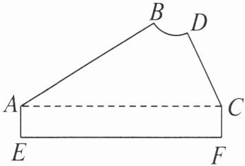 4. 一个零件的模型如图所示。按规定,零件模型中$AB$,$CD的延长线相交成85^{\circ}$的角。因交点不在零件上,不便测量,工人师傅连接$AC$,测得$\angle BAC= 32^{\circ}$,$\angle DCA= 65^{\circ}$,此零件是否符合规定?为什么?