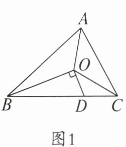 (2)如图2,在△ABC中,O是线段AD上一点(不与点A,D重合),连接BO,CO,试猜想$S_{△BOC}与S_{△ABC}$之比应该等于图中哪两条线段之比,并说明理由.