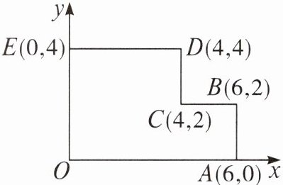 2. 如图,请利用坐标或面积比确定凹六边形 $ OABCDE $ 的重心位置.