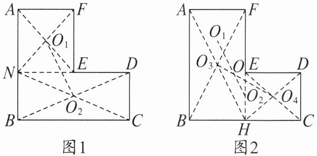 【解】如图 1,延长 $ DE $ 交 $ AB $ 于点 $ N $,画出长方形 $ ANEF $ 与长方形 $ NBCD $ 的重心 $ O_1 $ 和 $ O_2 $,连接 $ O_1O_2 $;