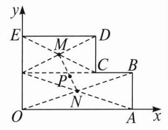 [解]如图,把凹六边形OABCDE分成上、下两个长方形,则它们的重心坐标分别为M(2,3),N(3,1),面积比为2:3,所以凹六边形OABCDE的重心P在线段MN上,且MP:PN=3:2,故重心P的坐标为(2.6,1.8).