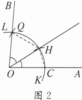 (2)作射线OA,以点O为圆心,EF的长为半径画弧KL,交射线OA于点C;