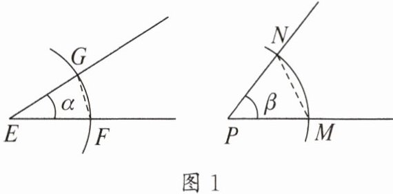 (1)分别以点E,P为圆心,适当长为半径画弧,交∠α的两边于点F,G,交∠β的两边于点M,N;