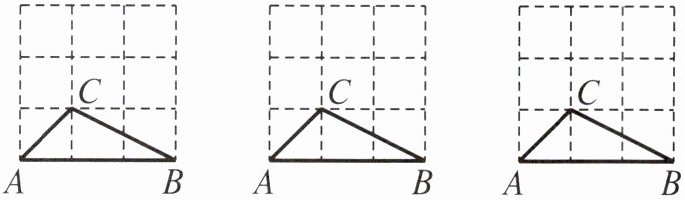 6. 在方格纸中,每个小格的顶点叫作格点,以格点为顶点的三角形叫作格点三角形。如图,在3×3的正方形格点图中,有△ABC,作△DEF使得△ABC和△DEF关于某直线成轴对称,请在下面的图中画出三种这样的△DEF。