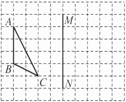 7. 如图,在方格纸中,已知△ABC和直线MN,点A,B,C都在格点上。