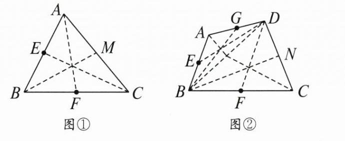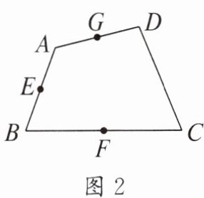 (2)如图 2,在四边形 $ ABCD $ 中,$ E $,$ F $,$ G $ 分别为 $ AB $,$ BC $,$ AD $ 的中点,请在图 2 中画出 $ CD $ 的中点 $ N $.