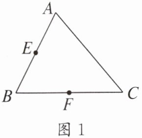 (1)如图 1,在 $ \triangle ABC $ 中,$ E $,$ F $ 分别为 $ AB $,$ BC $ 的中点,请在图 1 中画出 $ AC $ 的中点 $ M $;