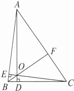 10. 如图,在 $ \triangle ABC $ 中,$ AD \perp BC $,$ CE \perp AB $,垂足分别为点 $ D $ 和点 $ E $,$ AD $ 与 $ CE $ 交于点 $ O $,连接 $ BO $ 并延长交 $ AC $ 于点 $ F $,若 $ AB = 5 $,$ BC = 4 $,$ AC = 6 $,则 $ CE : AD : BF $ 的值为