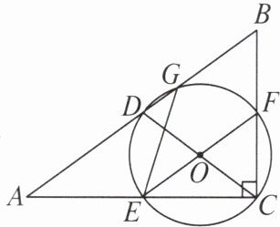 ★14. 如图,在$\triangle ABC$中,$\angle ACB = 90^{\circ}$,$D是AB$的中点,以$DC为直径的\odot O交\triangle ABC的边于点G$,$F$,$E$.