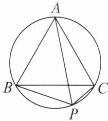 13. 如图,已知$\overset{\frown}{AB} = \overset{\frown}{BC} = \overset{\frown}{AC}$,点$P为劣弧\overset{\frown}{BC}$上的一点.