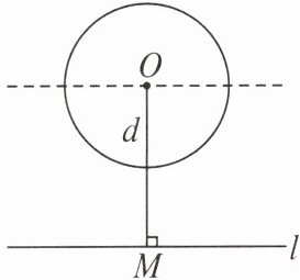 ★11. 如图,给定一个半径为$2$的圆,圆心$O到水平直线l的距离为d$,即$OM = d$。我们把圆上到直线$l的距离等于1的点的个数记为m$。如$d = 0$时,$l为经过圆心O$的一条直线,此时圆上有四个到直线$l的距离等于1$的点,即$m = 4$。由此可知: