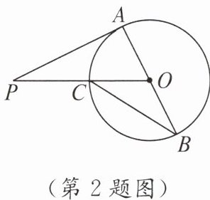 2. 如图,$AB是\odot O$的直径,$PA切\odot O于点A$,$PO交\odot O于点C$. 连接$BC$,若$\angle P = 40^{\circ}$,则$\angle B$等于(